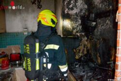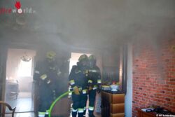 Die Lageerkundung durch Einsatzleiter Daniel Galos ergab, dass sich die Bewohnerin bereits auf den Gang retten konnte, durch die Fenster war Feuerschein bemerkbar. Sofort wurde über das erste Tanklöschfahrzeug ein Innenangriff unter Atemschutz gestartet. Ein zweiter Atemschutztrupp bekämpfte die Flammen über ein weiteres Rohr über die Drehleiter.