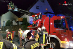 MÜCKE (DEUTSCHLAND): Drei Menschen wurden am Montagabend, 12. September 2016, bei einem Brand im Mücker Ortsteil Atzenhain leicht verletzt. Das Feuer war im Dachstuhl eines Fachwerkhauses in der Lehnheimer Straße ausgebrochen, möglicherweise durch einen Kabelbrand.