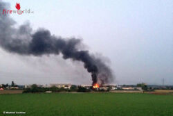 Obwohl ein Mitarbeiter noch versuchte das Feuer mit einem Handfeuerlöscher zu bekämpfen, konnte er die weitere Ausbreitung nicht mehr verhindern. Eine dicke schwarze Rauchsäule stieg in den Himmel empor und Flammenschein war auch von weitem zu sehen.