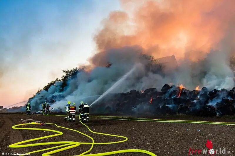 Nö: Großbrand von mehr als 2.000 Rundballen in Fischamend → mehrtägiger Einsatz