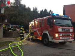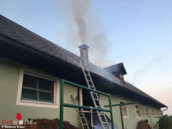 Drei Feuerwehren wurden alarmplanmäßig verständigt, führte OBM Huber fort. Beim Eintreffen der ersten Löschkräfte (FF St. Oswald b. Plankenwarth-St. Bartholomä) züngelten Flammen bereits durch die Eternitdachziegel. Die Dachsporen darunter waren bereits angekohlt.