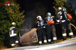 Während der Anfahrt wurde über Funk mitgeteilt, dass sich eine Person mit Verbrennungen im Bereich des Fahrzeuges befindet. Weiters war zu diesem Zeitpunkt bereits bekannt, dass eine Flüssiggasflasche im Camper war. Beim Eintreffen des Kommandofahrzeuges stand das Fahrzeug in Vollbrand. Bis zum Eintreffen des Rettungsdienstes wurde die verletzte Person von der Einsatzmannschaft betreut.