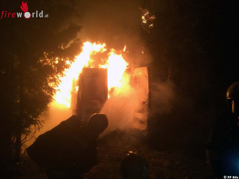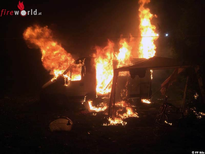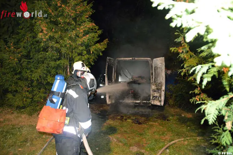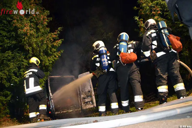 SILZ (T): Zum Brand eines Kleintransporters, welcher als Campingfahrzeug am Gelände des ehemaligen Crazy Eddy abgestellt war, wurde die Feuerwehr Silz am 14. September 2016 um 22.08 Uhr alarmiert.