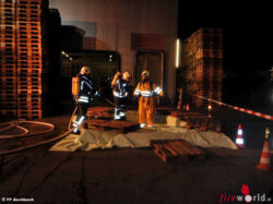 Währendessen wurden Zubringerleitungen gelegt, um die umliegenden Gebäude zu schützen. Ein Atemschutzsammelplatz wurde errichtet und ein Deko-Platz für die Trupps im Schadstoffanzug organisiert. Um 20:23 Uhr wurde ein letzter Trupp losgeschickt, um die Lage nochmals zu erkunden. Dieser konnte keine Gefahren mehr erkennen und somit wurde die Übung beendet.