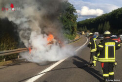 Deutschland: Auto auf der A5 bei Alsfeld in Flammen