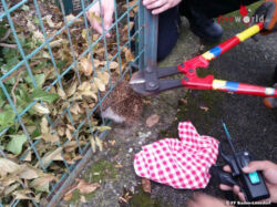 Nö: Tierrettungseinsatz in Baden-Leesdorf → Igel klemmt im Zaun fest