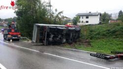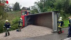Oö: Schotter-Lkw in Sandhäuselberg bei Unfall umgestürzt