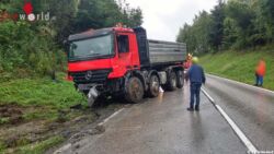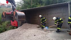 OHLSDORF (OÖ): In der Ortschaft Sandhäuselberg stürzte am Montag, den 19. September 2016, ein Schotter-Lkw aufgrund unbekannter Ursache um und kam auf der Fahrerseite in der Böschung zum Liegen.