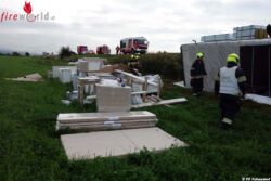 Auf der Beifahrerseite kam der gesamte Lkw-Zug zum Liegen, der Fahrer war beim Eintreffen der Einsatzkräfte glücklicherweise nicht eingeklemmt. Nach Absicherung der Unfallstelle und Aufbau eines Brandschutzes begann die langwierige Bergung des verunfallten Wracks. Währenddessen versorgte der Rettungsdienst den Fahrer und lieferte ihn mit Verletzungen unbestimmten Grades in ein Krankenhaus ein.
