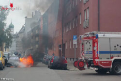 AUGSBURG (BAYERN): Kurz nach 16:00 Uhr des 20. September 2016 wurde die Berufsfeuerwehr Augsburg durch mehrere Anrufer zum Pfärrle gerufen. Ein Kfz brannte beim Eintreffen der Berufsfeuerwehr Augsburg in voller Ausdehnung.