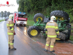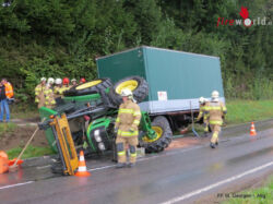 ST. GEORGEN IM ATTERGAU (OÖ): Am 19. September 2016 wurde die FF St. Georgen zu einem Verkehrsunfall auf die Attergauer Landesstraße gerufen. Auf der Höhe des Schloss Kogls verlor ein Lenker die Kontrolle über sein Traktor-Anhänger Gespann, kam seitlich in den Graben und stürzte bei dem Versuch, dies zu korrigieren, um.