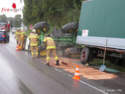 Die FF St. Georgen sicherte in der Erstphase die Unfallstelle ab, band ausgeflossene Betriebsmittel und richtete eine großräumige Umleitung ein. Die Bergung des Gespanns gestaltet sich äußerst langwierig wofür insgesamt zwei Kräne und zwei weitere Traktoren benötigt wurden. Nach der Abkopplung des Traktors vom Hänger wurde dieser vorsichtig aufgerichtet und anschließend mit dem Schwerlastkran auf einen Hänger gehievt und abtransportiert.