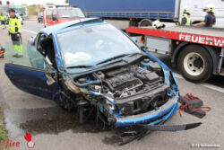 Die Fahrerin blieb komplett unverletzt. Das abgerissene Vorderrad steckte im Zwillingsreifen des nachfolgenden Sattelschleppers. Der Pkw wurde mittels Kran des ASP geborgen und von der Fahrbahn entfernt. In weiterer Folge bargen die Feuerwehrleute das Vorderrad aus dem Lkw, um dessen Weiterfahrt zu ermöglichen.