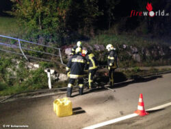 Oö: Massiver Ölaustritt nach nächtlichem Verkehrsunfall auf der L549 Almseestraße in Scharnstein