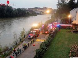 STEYR (OÖ): „Verkehrsunfall mit eingeklemmter Person, Auto in Ennsfluss gestürzt. Ortskai 14“ So lautete die Alarmierung der beiden Spezialzüge (technischer Zug und Wasserzug) der Freiwilligen Feuerwehr Steyr am 21. September 2016.