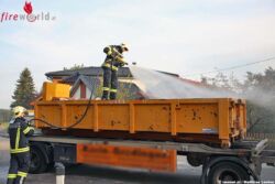 WEIBERN (OÖ): Zwei Feuerwehren standen Freitagabend, den 23. September 2016, bei einem Brand einer Lkw-Ladung in Weibern (Bezirk Grieskirchen) im Löscheinsatz. Der Lkw hatte einen Container mit Bauschutt vom Altstoffsammelzentrum in der Gemeinde abgeholt.