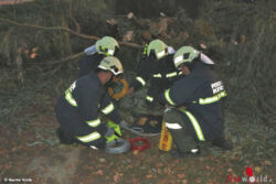 Ein schwerer Sturm verursachte Windbruch bei großen Bäumen, wodurch eine Person von großen Ästen begraben wurde. Die Feuerwehren befreiten die Person mit Hebekissen, gleichzeitig wurde an dieser Station eine Motorkettensägenschulung durchgeführt