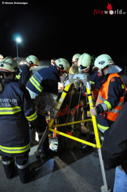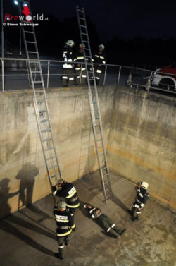 Die Tiefenrettung fand in der Kläranlage Gaindorf statt. Dabei retteten die Feuerwehren verunfallte Personen aus einem Großbecken mit einer Leiterkonstruktion und aus einem Schacht mit einer Dreibeinwinde. Zuvor wurde der sichere Abstieg mit einem Gasmessgerät überprüft. Zwei eingeklemmte Personen mussten in Szenario 2 aus Unfallfahrzeugen gerettet werden. Dabei wurde besonders auf die Handhabung der Geräte und eine schonende Vorgehensweise geachtet.