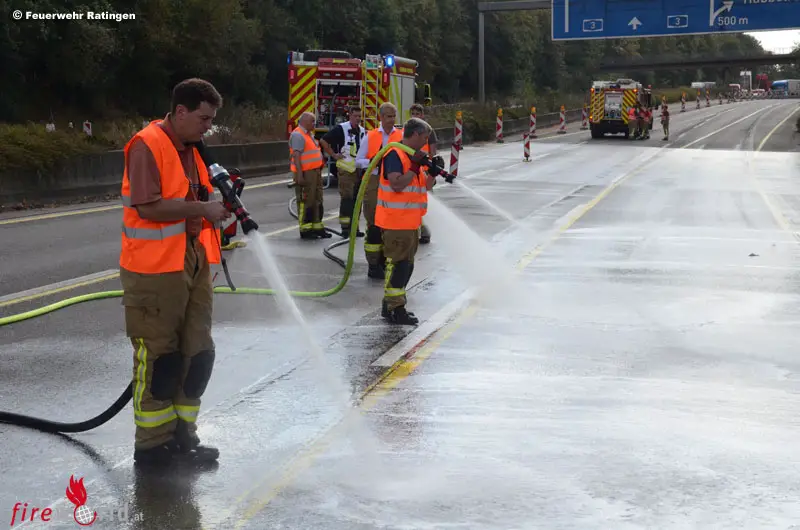 Deutschland: Ausgeflossenes Reinigungsmittelkonzentrat erfordert langwierigen Autobahneinsatz bei Ratingen