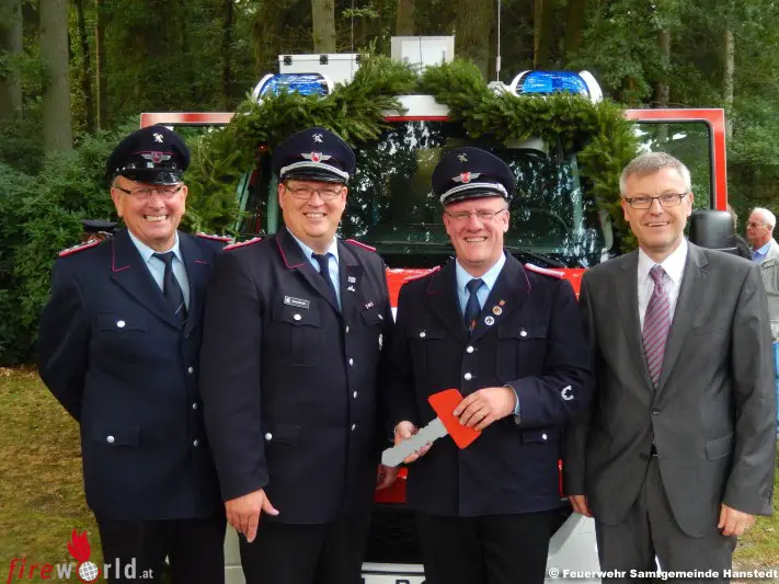 Nach langen und intensiven Planungsgesprächen, die Ortsbrandmeister Dirk Röhrs zusammen mit einem eigens hierfür ins Leben gerufenen Team geführt hatte, konnte das Fahrzeug nun übergeben werden. Von der endgültigen Erstellung der Leistungsbeschreibung über das Ausschreibungsverfahren, die Vergabe und den Bau des Fahrzeuges bis zu dessen Lieferung vergingen etwa achtzehn Monate. Röhrs begrüßte neben Vertretern aus dem Samtgemeinderat und dem entsprechend zuständigen Fachausschuss auch viele Ortsbrandmeister aus der Samtgemeinde Hanstedt, die der Einladung gerne gefolgt waren. Besonders begrüßte Ortsbrandmeister Röhrs die vielen Mitglieder des Fördervereins, allen voran Herrn Dietmar Kneuper sowie die Weseler Jugendfeuerwehr.