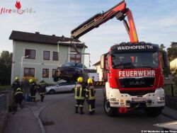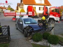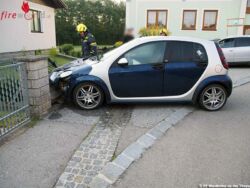 WAIDHOFEN AN DER THAYA (NÖ): Um 7.15 Uhr wurde die Freiw. Feuerwehr Waidhofen an der Thaya am 23. September 2016 von der Polizei zur Bergung eines Unfallfahrzeuges in der Moritz Schadek-Gasse alarmiert. Ein Pkw war in einer Linkskurve gegen eine Gartenmauer gekracht und musste geborgen werden.