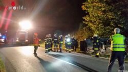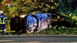 In weiterer Folge prallte das Fahrzeug gegen einen Baum und einen Verteilerkasten. Durch die Wucht des Anpralls wurde das Fahrzeug erheblich beschädigt, herumgedreht und kam auf der Seite zu liegen. Beim Eintreffen der Einsatzkräfte der Feuerwehr war der Fahrer nicht an der Unfallstelle.