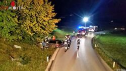 Oö: Fahrzeug prallt gegen einen Baum und einen Verteilerkasten