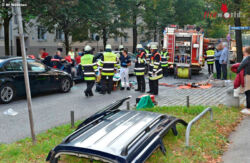 Von der Integrierten Leitstelle wurden zwei Rettungswagen zur Einsatzstelle gesandt. Diese forderten einen Löschzug der Berufsfeuerwehr nach, um eine möglichst schonende Rettung für die Patienten zu ermöglichen. Die Einsatzkräfte entfernten mit hydraulischen Rettungsgeräten das Dach eines Fahrzeugs. Nach einer achsengerechten Rettung, wurden vier Personen in ein Münchner Krankenhaus verbracht. Drei Personen wurden bei dem Aufprall leicht verletzt, eine junge Frau erlitt schwere Verletzungen. Während der Rettungsarbeiten kam es zu starken Verkehrseinschränkungen im Bereich des Prinzregentenplatzes. Zur Ermittlung der Unfallursache hat das Fachkommissariat der Polizei die Ermittlungen aufgenommen.