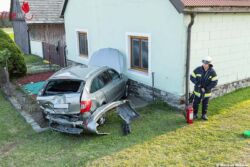 Nö: Pkw wird nach Auffahrunfall gegen ein Haus geschleudert