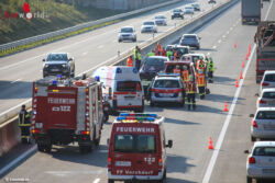 Wenig später ereignete sich im Rückstaubereich zwischen der Autobahnab- und Auffahrt ebenfalls ein Verkehrsunfall. Mehrere Personen wurden bei dem Unfall leicht verletzt. Rettungsdienst und ein praktischer Arzt standen im Einsatz. Der Streckendienst sicherte die Unfallstelle ab und unterstützte bei den Aufräumarbeiten.