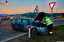 Aus unbekannter Ursache fuhr ein von Knittelfeld kommender Pkw-Lenker quer über einen Kreisverkehr im Gemeindegebiet von Spielberg, rammte dabei ein Hinweisschild, bis er bei einer Vorrangtafel zum Stillstand kam.