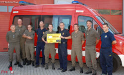 Am 30. September trafen sich die Vertreter des AAB4 gemeinsam mit den Vertretern beider Einsatzorganisationen und überreichten die zwei Schecks in Höhe von je 856 Euro. Seitens der Freiw. Feuerwehr Waidhofen/Thaya bzw. der Höhenrettungsgruppe Waidhofen/Thaya konnten Feuerwehrkommandant HBI Christian Bartl, Kommandant-Stellvertreter OBI Manfred Astner und Zugskommandant BM Otto Nehrer den Scheck persönlich entgegennehmen.