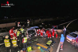 Die Mitglieder der FF Fischamend wurden um 23:15 Uhr mit dem Alarmstichwort Verkehrsunfall auf der A4 mit mehreren Fahrzeugen Höhe Fischamend Richtung Ungarn alarmiert. Angekommen an der Unfallstelle war die API Schwechat sowie das Rote Kreuz und der First Responder Fischamend bereits mit der Betreuung und Erstversorgung von verletzten Insassen beschäftigt. In Absprache mit dem Rettungsdienst wurde die Türe eines Ford entfernt um eine schwer verletzte Frau im Fond schonend zu retten. Insgesamt wurden bei dem Verkehrsunfall sieben Insassen verletzt, zwei davon schwer.