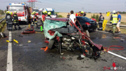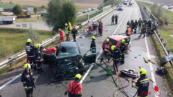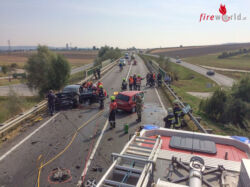 Auf der Bundestraße 4 bei Ziersdorf, auf Höhe der Brücke krachten zwei Pkw frontal gegeneinander, ein drittes Fahrzeug wurde dabei ebenfalls in den Unfall verwickelt. Fast zeitgleich trafen die ersten drei Feuerwehren am Einsatzort ein. Umgehend wurde gemeinsam mit Polizei und Roten Kreuz mit der Absicherung und Betreuung der verletzten Personen begonnen. In Abstimmung mit dem Notarzt des Rettungshubschraubers wurde der schwer verletzte Beifahrer des Mercedes mit hydraulischen Rettungsmitteln befreit. Zwei weitere Personen im diesem Fahrzeug kamen mit leichten Verletzungen davon. Die Person des dritten Fahrzeuges kam mit einem Schock davon und wurde vom Roten Kreuz betreut.