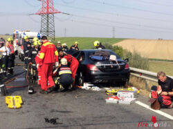 ZIERSDORF (NÖ): Kurz vor Mittag des 1. Oktober 2016 wurden vier Feuerwehren zu einem Verkehrsunfall mit mehreren verletzen Personen alarmiert. Die erste Alarmmeldung wurde über ein automatisches System, über den im Unfall verwickelten Mercedes ausgelöst.