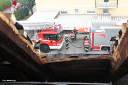 Um eine Brandausbreitzug auf den gesamten Dachstuhl verhindern zu können, wurde zusätzlich ein Außenangriff mittels zwei C-Rohren durchgeführt. Der Brandherd konnte rasch im Bereich eines Kamins lokalisiert und eingedämmt werden. Um Glutnester bekämpfen zu können, mussten Teile einer Dachkonstruktion durch die Atemschutztrupps geöffnet werden.
