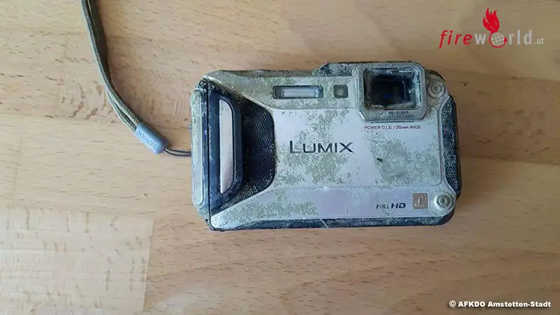 Am Sonntag, den 28. August ging an einem herrlichen Sommertag Stefan Bauer mit seiner Mutter in die Ybbs baden. Der 10-jährige Stefan tauchte mehrmals in der Ybbs herum wo er dabei auf eine Kamera stieß. Der Sohn von Frau Mahlo teilte dies seiner Mutter mit. Anita Mahlo die Mutter des 10-jährigen drehte die Kamera auf und sah die Fotos die am Landestreffen gemacht wurden. Frau Mahlo setzte sich einen Tag später via Facebook mit der Freiwilligen Feuerwehr Amstetten in Verbindung und teilte uns dies mit. Sie brachte uns anschließend die Action-Kamera in die Bereichsalarmzentrale.