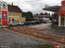 ALKOVEN (OÖ): Zu einem Ölaustritt beim Spar in Alkoven ist die Freiw. Feuerwehr Alkoven um 11.47 Uhr des 4. Oktober 2016 per Personenrufempfänger alarmiert worden. Die nachfolgende Lagererkundung ergab dann ein etwas großflächigeres Problem: