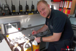 Zum ersten „Einsatz“ kamen auch der neue Wechsellader-Atemschutz mit dem neuen Wechselladerfahrzeug, welche seit kurzem bei der Betriebsfeuerwehr Magna Powertrain in Lannach stationiert sind, um die geleerten Pressluftflaschen zu füllen. Den ersten Test bestand das System auf jeden Fall, es darf wohl auch erwartet werden, dass sich das System im Einsatz bewähren wird.