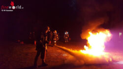 Die Jugendlichen konnten sehen, wie schnell sich Benzin entzündet und durften den Brand mit einem Handfeuerlöscher löschen. Ebenso wurde vorgeführt was passiert, wenn man einen Benzinbrand versucht mit Wasser zu löschen.