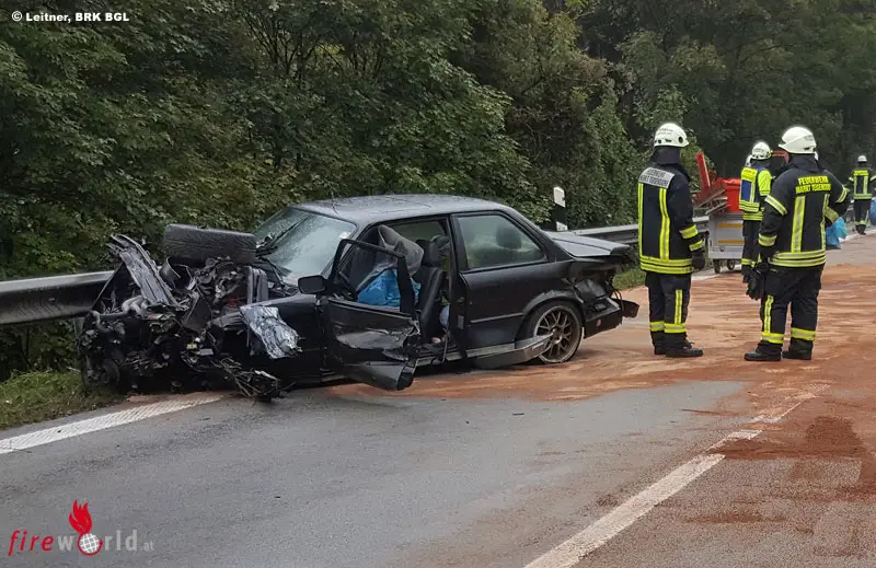 TEISENDORF/TEISENBERG (BAYERN): Am Samstagmorgen, 8. Oktober 2016, gegen 8.20 Uhr ist auf der A8 in Fahrrichtung München kurz nach dem Weiler Teisenberg ein 32-jähriger Mann mit seinem Bmw in die Leitplanke gekracht. Der Ramsauer kam nach erster Einschätzung des Roten Kreuzes mit leichteren Verletzungen davon, sein Fahrzeug wurde allerdings komplett zerstört, wobei ein Trümmerfeld die A8 blockierte und im dichten Reiseverkehr für einen kilometerlangen Rückstau bis über die Anschlussstelle Anger hinaus sorgte.