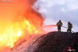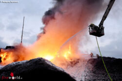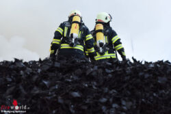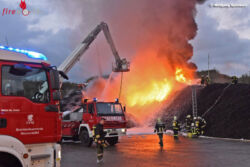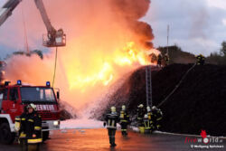 OHLSDORF (OÖ): 1.000 Tonnen Reifenschnitzel sind Sonntagfrüh, 9. Oktober 2016, in einer Recyclinganlage in Ohlsdorf (Bezik Gmunden) aus noch ungeklärter Ursache in Brand geraten. Zehn Feuerwehren waren im Einsatz. Der Sachschaden wird mit 10.000 Euro beziffert.
