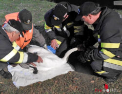 So wurde die Feuerwehr Altneudörfl, die sich mit 9 Mann am Heimweg von einer Katastrophenhilfsdienst Übung befand, verständigt. Unter der Einsatzleitung von Kommandant Franz Lustinger wurde das Einsatzboot zu Wasser gelassen. Durch den Einsatz des Motorbootes konnte der Schwan in der Dunkelheit aufgespürt und nach 12 Minuten an Land gebracht werden. Nach dem Lösen der Angelschnur und einer kurzen Rast konnte der unverletzte Schwan um 19:30 Uhr in die Freiheit entlassen werden.