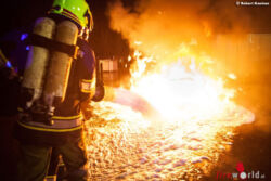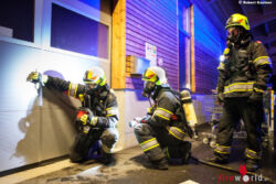 In weiterer Folge wurde auch das Innere des neuen Altstoffsammelzentrums erkundet. Dort wurden weitere Brandherde gefunden und bekämpft. „Ebenso galt es, zwei darin befindliche Personen ins Freie zu retten“, schildert Erwin Göttfert. „Wir haben sozusagen einen Einbruch nachgestellt, bei dem es aus Frust für die beiden Männer, aus ihrer Sicht nichts Wertvolles gefunden zu haben, zu mehreren Brandlegungen gekommen ist“, so Michael Baumann, der neben Göttfert auch für die Ausarbeitung der Übung verantwortlich gewesen ist. Im Zuge der weiteren Nachkontrollen wurden noch kleinere Glutnester in dem stark (künstlich) verrauchten Räumen lokalisiert und abgelöscht.