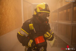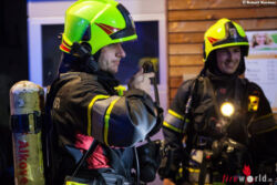 Nicht ganz so einfach stellte sich der sonst eher routinierte Einsatz mit der Wärmebildkamera heraus. „Aufgrund der Tatsache, dass die Gebäudewände aufgrund des innen nur simulierten Brandes ja kalt waren, ergaben sich für zu suchende Objekte – in dem Fall Personen – nur recht geringe Kontrastdarstellungen am Bild der Kamera. So hatten die Atemschutzträger in dem verwinkelten Räumen doch eine entsprechende Herausforderung zu bestehen, ihren Job zu erledigen“, weiß Göttfert.