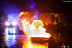 Oö: Brand im neuen Altstoffsammelzentrum → FF Alkoven übte, Wärmebildkameraeinsatz schwierig