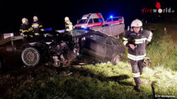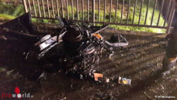 Ein Trümmerfeld fanden Feuerwehrmänner aus Michlgleinz vor, als sie am 10. Oktober gegen 18:30 Uhr zu einem Verkehrsunfall alarmiert wurden. Aus unbekannter Ursache kam ein aus Gleinstätten kommender Lenker ins Schleudern und wurde vom Brückgeländer durchbohrt. Dabei wurde der Motor aus dem Pkw gerissen und kam einige Meter entfernt auf der Straße zum liegen.
