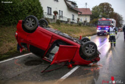 Der Unfall ereignete sich auf der Innbachtalstraße im Gemeindegebiet von Krenglbach. Laut ersten Informationen überschlug sich ein PKW und kam am Dach zum Liegen. Eine Person erlitt bei dem Unfall Verletzungen unbestimmten Grades. Die Feuerwehr führte die Aufräumarbeiten an der Unfallstelle durch, band ausgelaufene Betriebsmittel und sicherte die Unfallstelle ab.