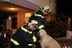Rasch stellte sich heraus, dass es zu einem Brandausbruch im Erdgeschoss des Einfamilienhauses kam, die Mutter die drei noch schlafenden Kinder in Sicherheit brachte und der Hausherr erste Löschmaßnahmen mit einem Handfeuerlöscher setzte. Auch die Haustiere konnten rechtzeitig nach draußen flüchten.