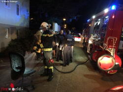 Aufgrund der umfassenden Straßenbauarbeiten in diesem Bereich gestaltete sich die Anfahrt etwas schwierig. Fälschlich abgestellte Fahrzeuge am Straßenrand behinderten zusätzlich die unkomplizierte Zufahrt. An der Einsatzadresse erkundete der Einsatzleiter, BI Martin Gall, die Lage und wurde von den bereits anwesenden Polizeibeamten informiert. Auch der Rettungsdienst war schon mit der Betreuung mehrerer Hausbewohner beschäftigt.